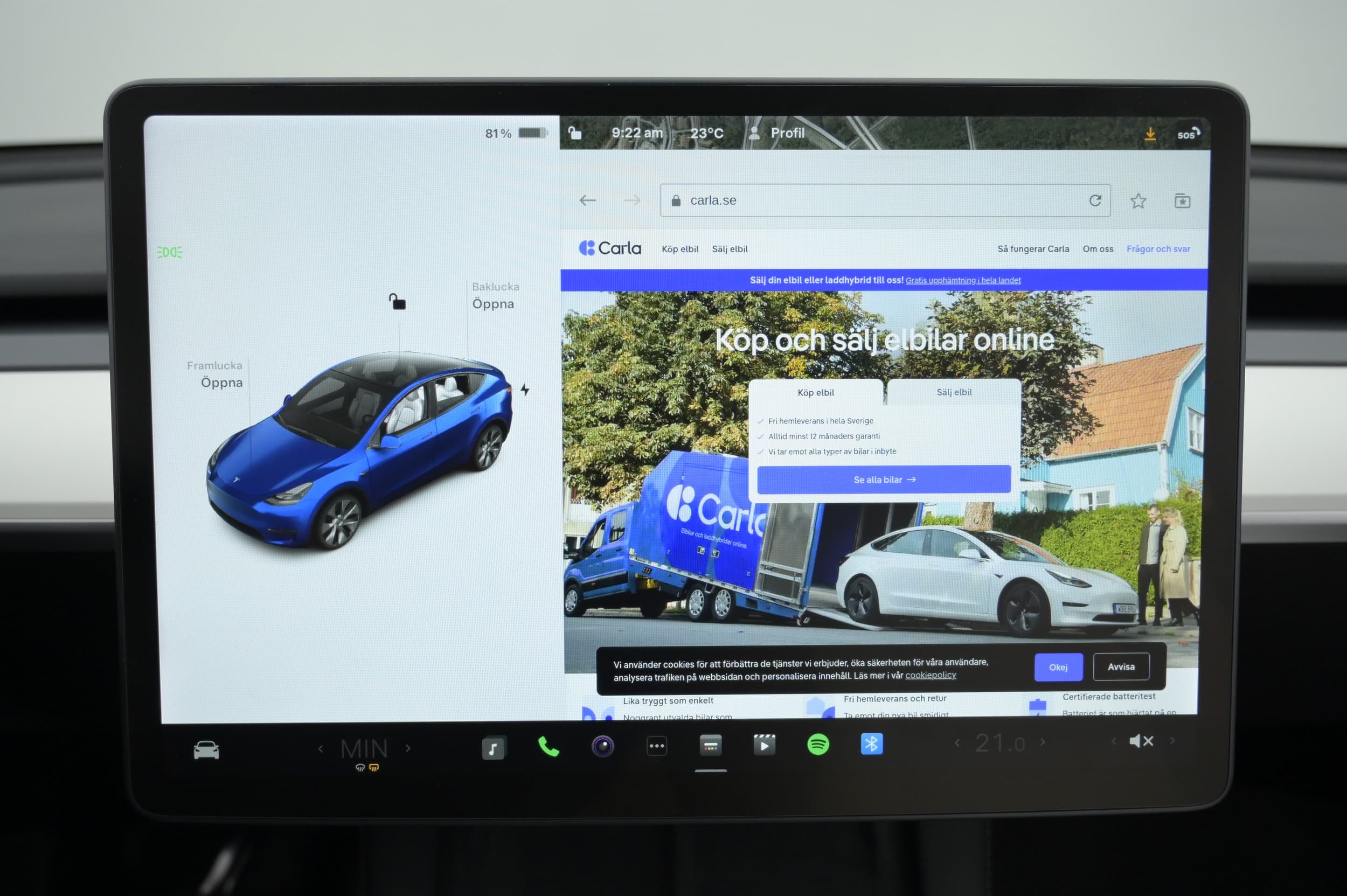Alla bilar som säljs här på carla.se har genomgått en . Våra experter har noggrant gått igenom hela bilen och letat med lykta efter brister i allt från bilens kaross till interiör eller teknik. Vissa brister kan ha varit så små att de inte gick att fånga på bild och därför visas de inte i galleriet.